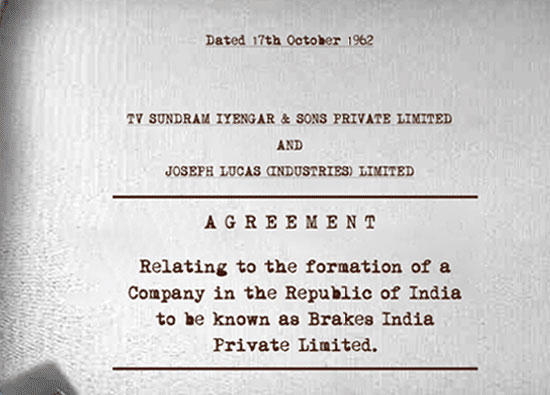 Agreement signifying the formation of Brakes India