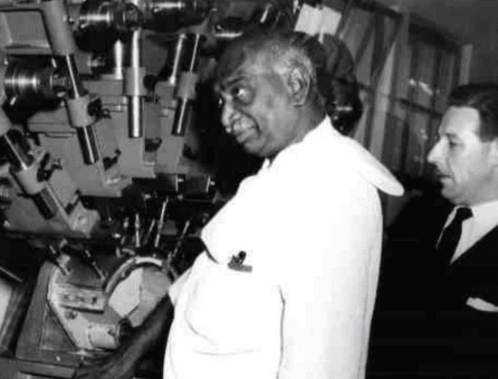 Mr. TS Rajam escorting Mr. Kamaraj to the factory inauguration